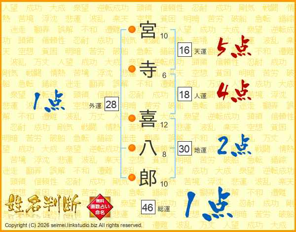 宮寺喜八郎さんの総運は46画の1点!