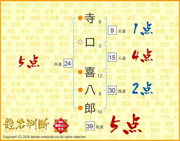 寺口喜八郎さんの総運は39画の5点!