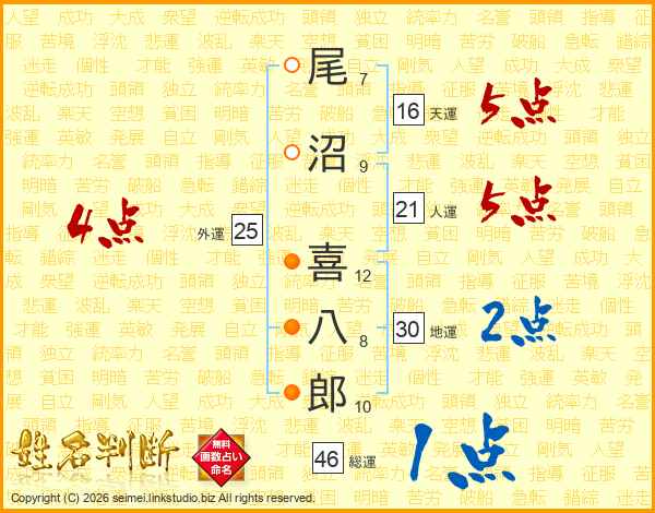 尾沼喜八郎さんの総運は46画の1点!