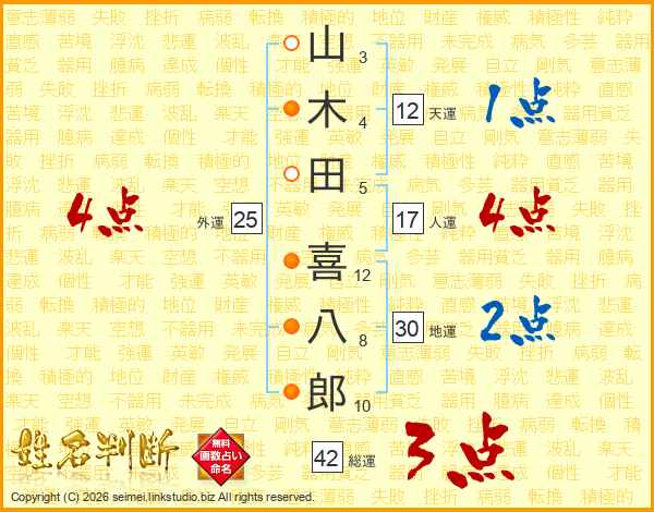 山木田喜八郎さんの天運は12画の1点!
