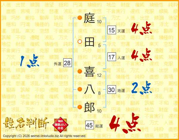 庭田喜八郎さんの総運は45画の4点!