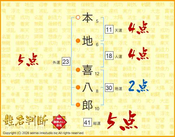 本(5画)地(6画) 喜(12画)八(8画)郎(10画)