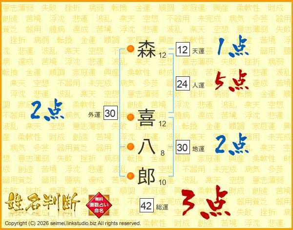 森喜八郎さんの総運は42画の3点!