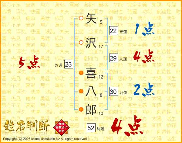 矢沢喜八郎さんの外運は23画の5点!