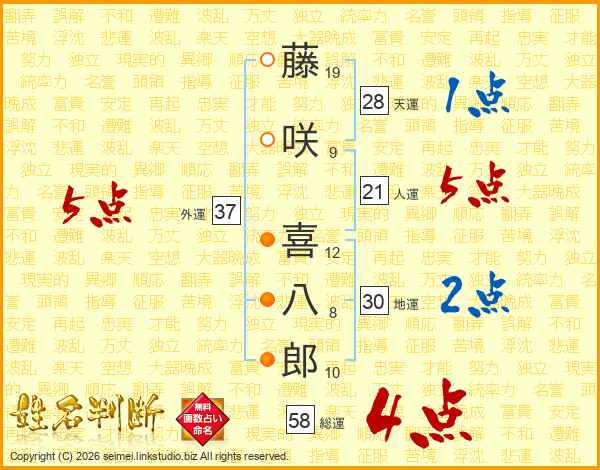 藤咲喜八郎さんの外運は37画の5点!