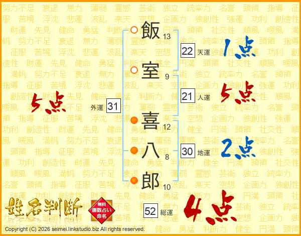 飯室喜八郎さんの総運は52画の4点!