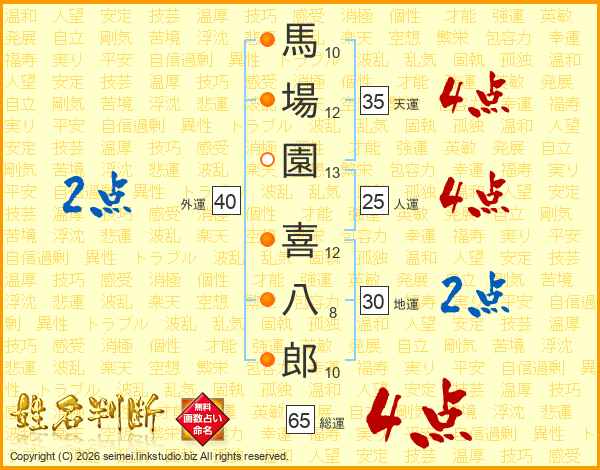 馬場園喜八郎さんの総運は65画の4点!