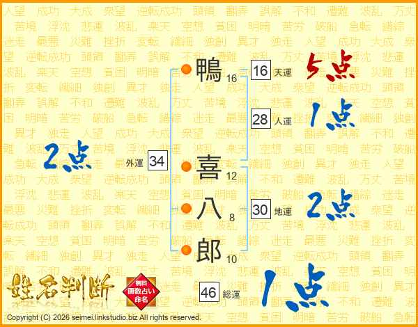 鴨喜八郎さんの総運は46画の1点!