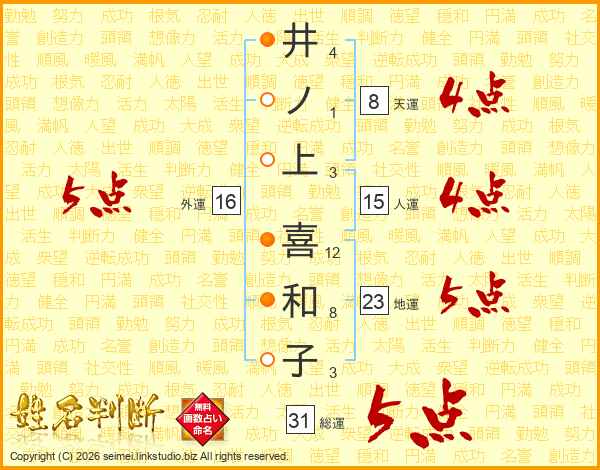 井ノ上喜和子さんの総運は31画の5点!