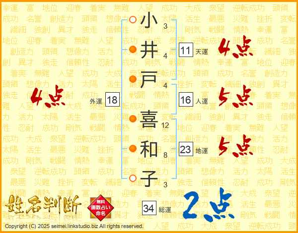 小井戸喜和子さんの天運は11画の4点!