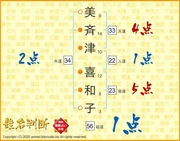 美斉津喜和子さんの天運は33画の4点!