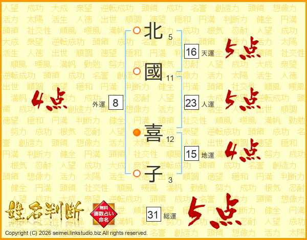 北國喜子さんの総運は31画の5点!