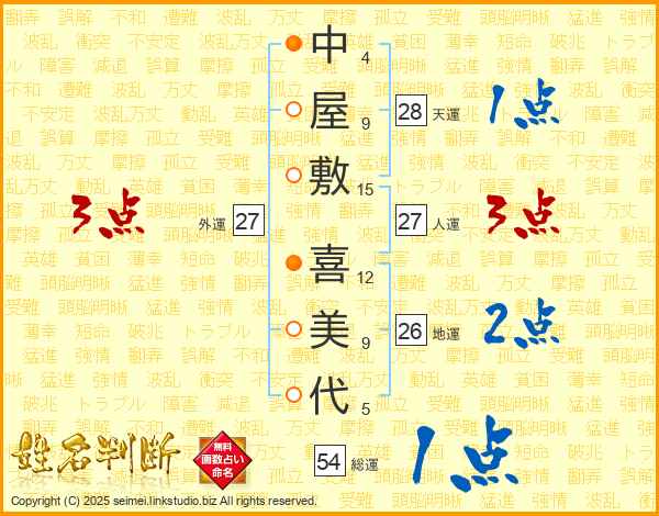 中屋敷喜美代さんの総運は54画の1点!