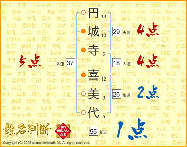 円城寺喜美代さんの外運は37画の5点!