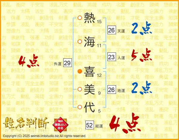 熱海喜美代さんの総運は52画の4点!
