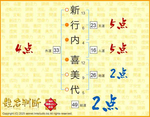 新(13画)行(6画)内(4画) 喜(12画)美(9画)代(5画)