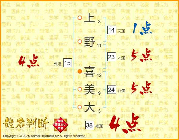 上野喜美大さんの総運は38画の4点!