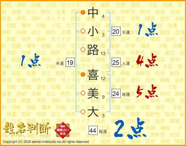 中小路喜美大さんの人運は25画の4点!