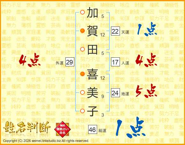加賀田喜美子さんの総運は46画の1点!