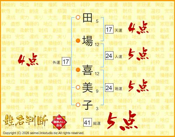 田場喜美子さんの総運は41画の5点!