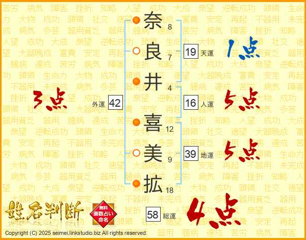 奈良井喜美拡さんの地運は39画の5点!