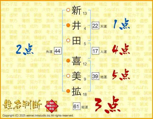 新井田喜美拡さんの地運は39画の5点!