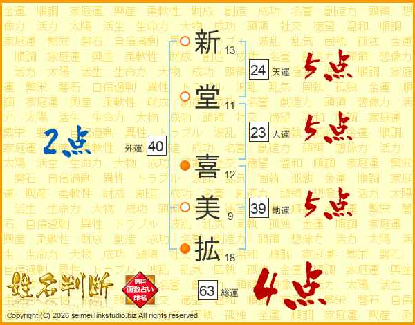 新堂喜美拡さんの総運は63画の4点!