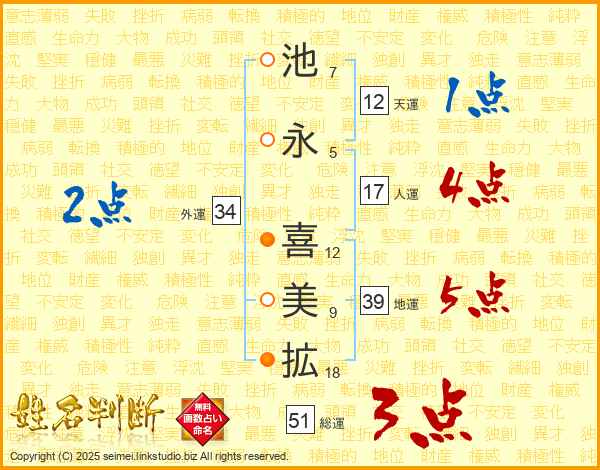 池永喜美拡さんの地運は39画の5点!