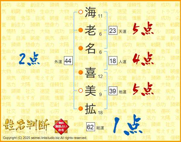 海老名喜美拡さんの外運は44画の2点!