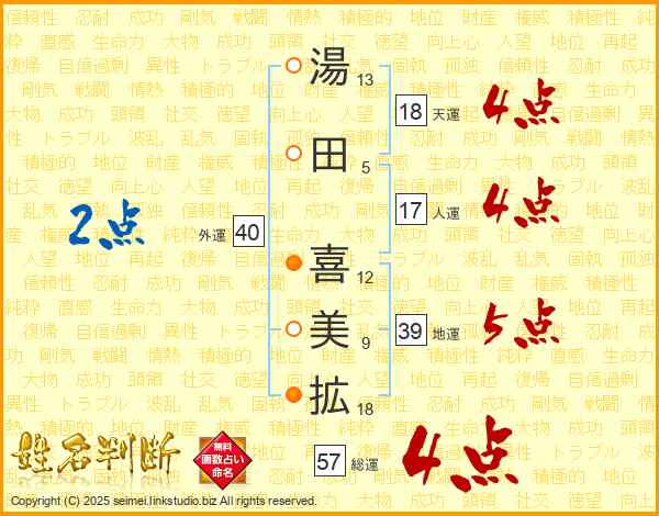 湯田喜美拡さんの総運は57画の4点!