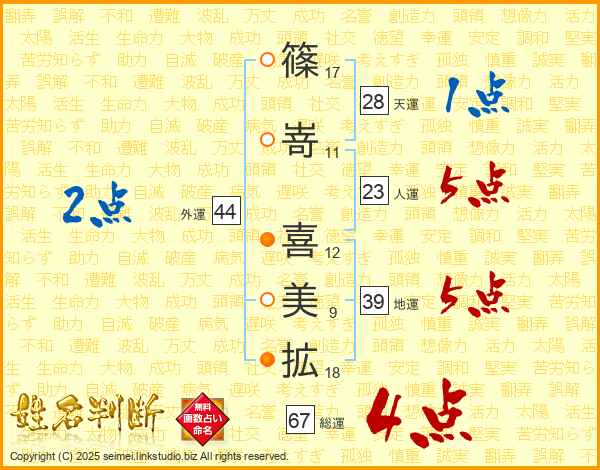 篠(17画)嵜(11画) 喜(12画)美(9画)拡(18画)