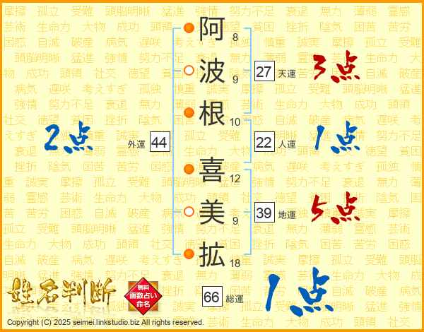 阿波根喜美拡さんの総運は66画の1点!