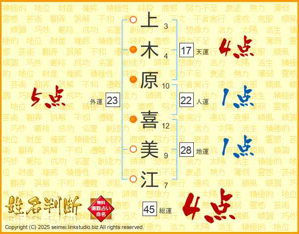 上木原喜美江さんの総運は45画の4点!