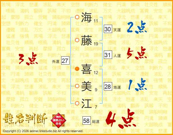 海藤喜美江さんの総運は58画の4点!