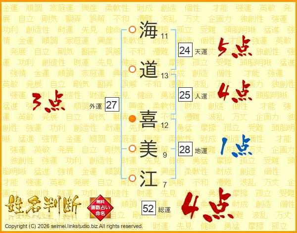 海道喜美江さんの総運は52画の4点!