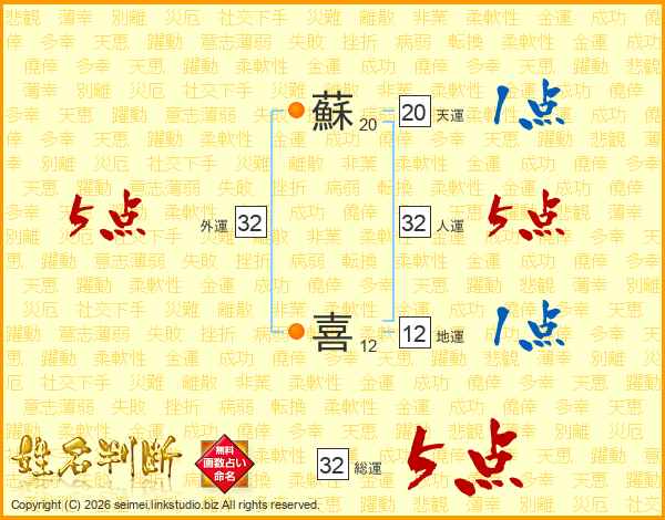 蘇喜さんの総運は32画の5点!