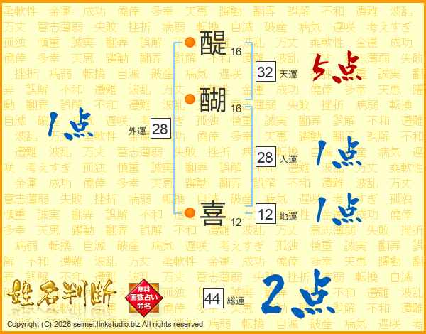 醍醐喜さんの総運は44画の2点!