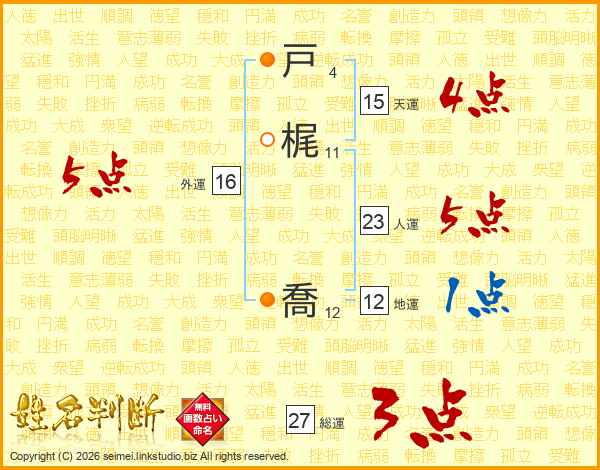 戸梶喬さんの総運は27画の3点!