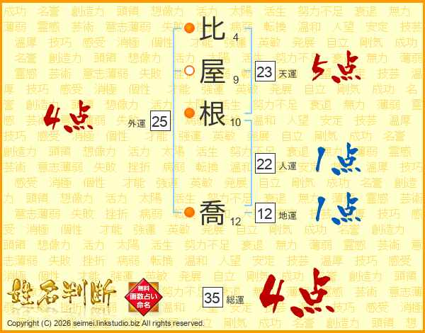 比屋根喬さんの総運は35画の4点!