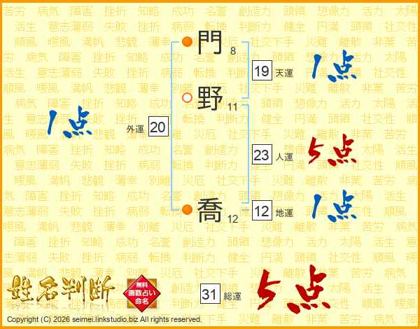 門野喬さんの総運は31画の5点!
