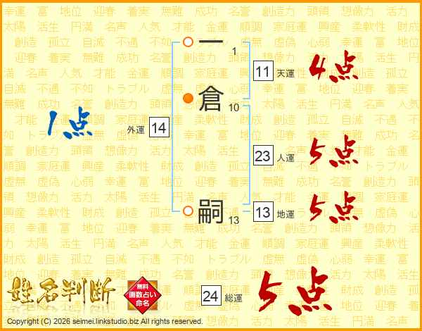 一倉嗣さんの天運は11画の4点!