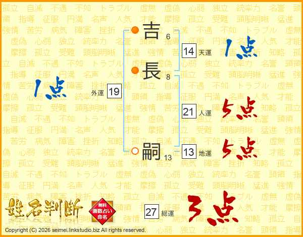 吉長嗣さんの人運は21画の5点!