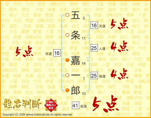 五条嘉一郎さんの総運は41画の5点!