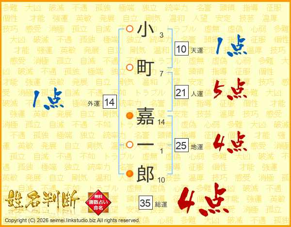 小町嘉一郎さんの総運は35画の4点!