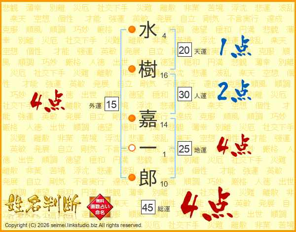 水樹嘉一郎さんの総運は45画の4点!