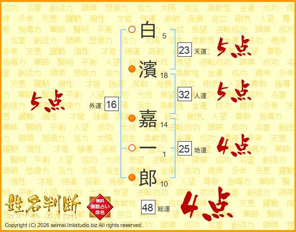 白濱嘉一郎さんの天運は23画の5点!