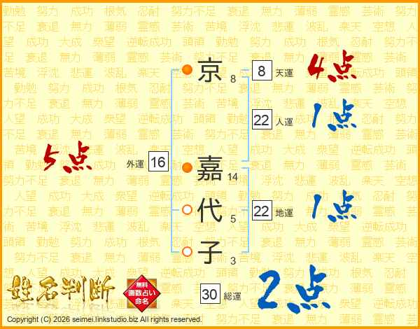 京(8画) 嘉(14画)代(5画)子(3画)