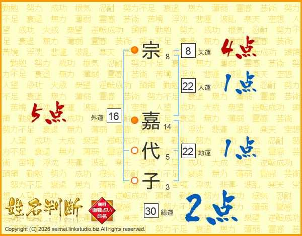宗嘉代子さんの外運は16画の5点!