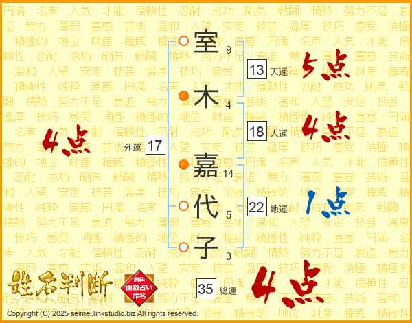 室木嘉代子さんの総運は35画の4点!