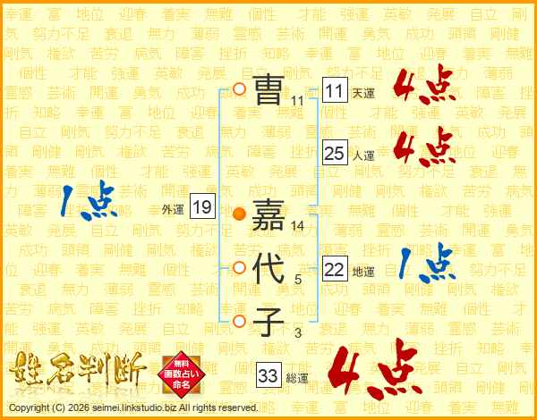 曺嘉代子さんの総運は33画の4点!